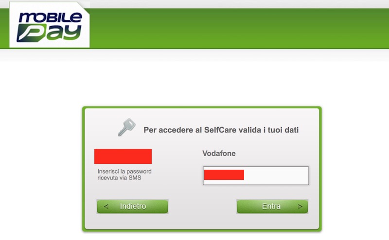 Una volta caricata la pagina, vi verrà mostrato il modulo d'accesso al SelfCare di MobilePay da cui poter gestire, visualizzare ed eventualmente disattivare tutti i servizi in abbonamento attivati sulla vostra scheda SIM tra cui Mobile Passion.