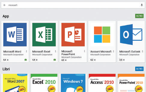 Prima di tutto procediamo con il download di Office Mobile e per fare ciò avviamo l’app Play Store se usiamo Android, App Store se stiamo con un iPhone o lo Store di Microsoft nel caso di Windows Phone o Windows 10 mobile, e nel campo di ricerca digitiamo ‘Microsoft’. Appaiono subito le quattro app che dobbiamo scaricare una ad una. Al primo avvio inseriamo i dati del nostro account Microsoft, oppure registriamoci gratuitamente.